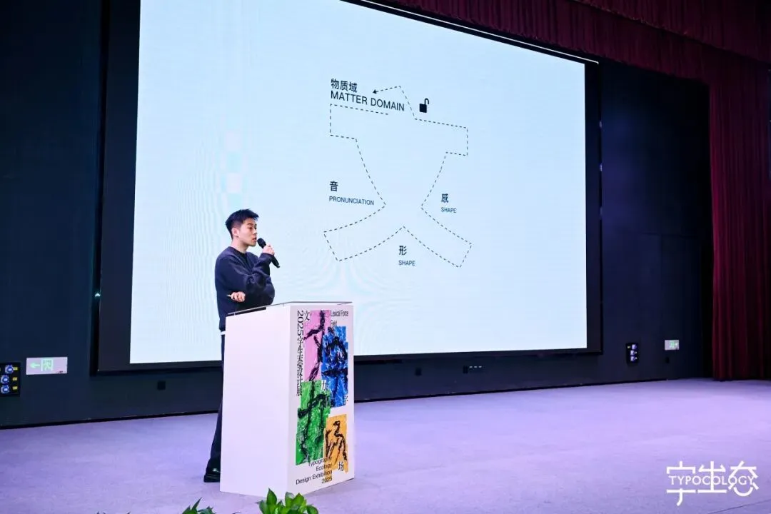 知名设计师杜潇分享了其在中文字体编排中的探索。他坦言曾因中文“方块结构”缺乏西文的天然节奏感而困扰,后通过引入英文、表情符号、随机排布与单元格分割等方式,打破规整性,赋予中文排版动态韵律。其为“方正奖”设计的视觉系统,更以字体盲盒、银戒文创等形式,将字体转化为可触摸、可收藏的艺术体验。