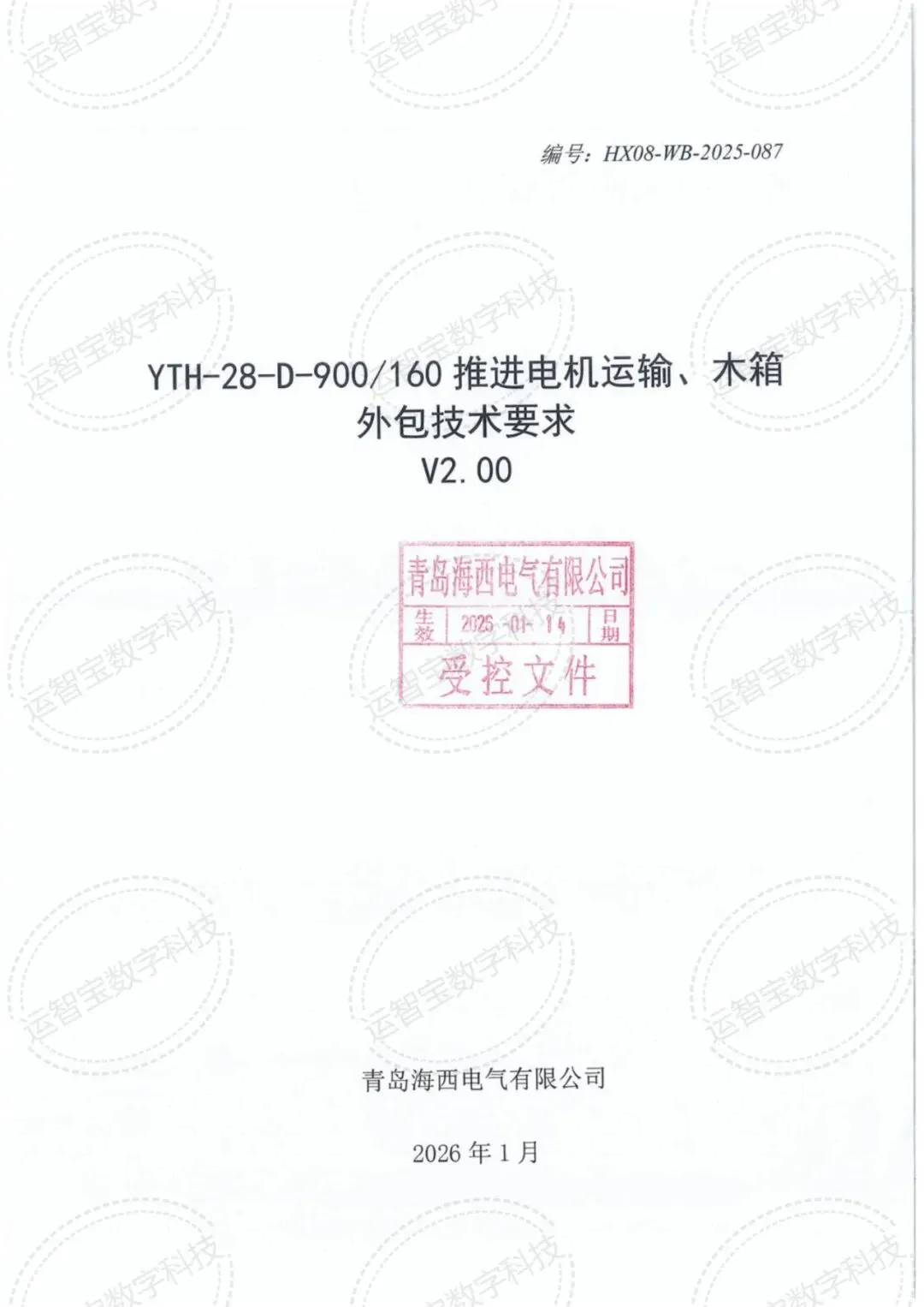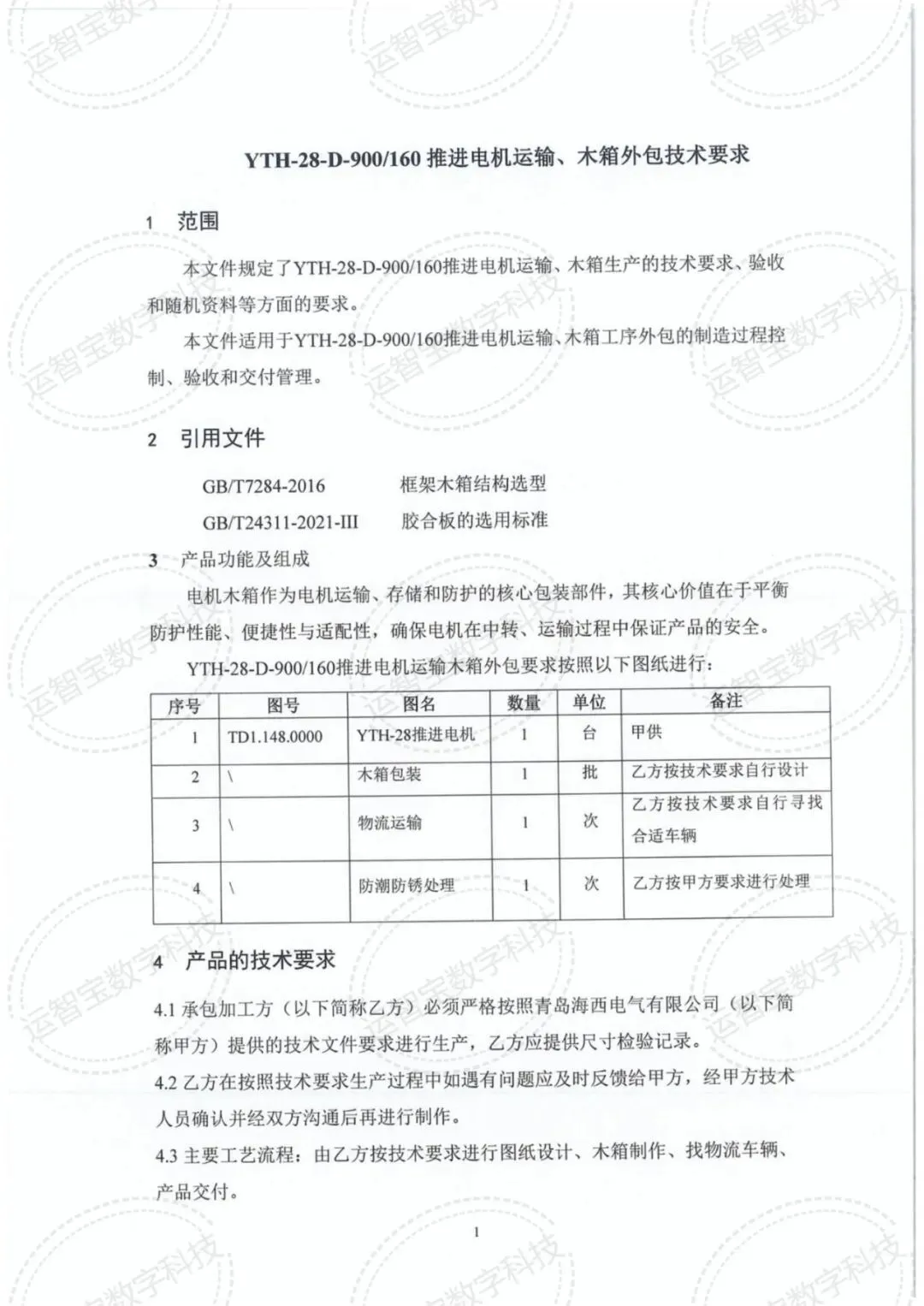承运方式:需满足技术附件中(900kw)推进电机运输、木箱外包技术要求,确保货物安全、按时送达,承运车辆及防护措施需符合电气设备运输规范。