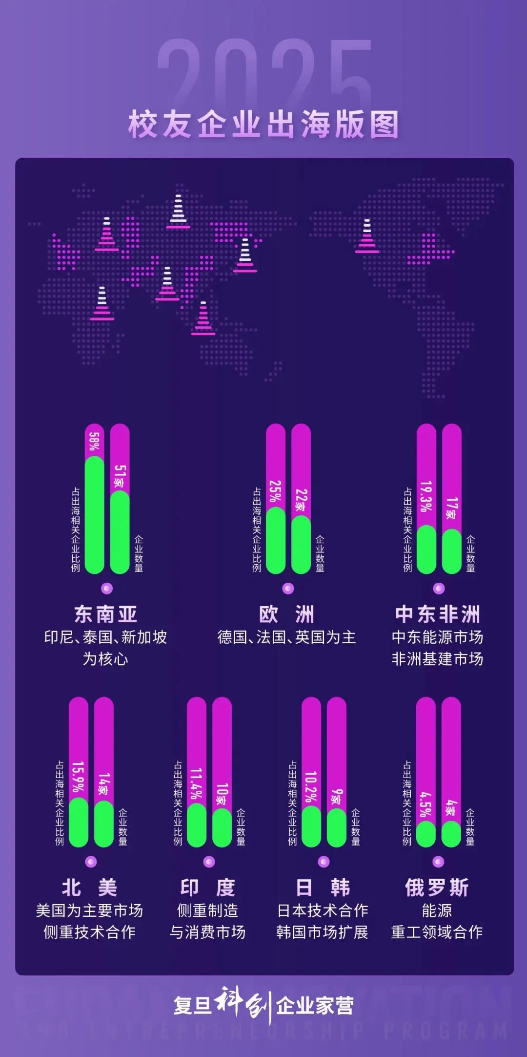 出海,则是寻找第二增长曲线的主动压力测试。1/3校友企业已将业务拓展至全球或在筹备进入全球市场,目的地覆盖东南亚(占比58%)、欧洲、中东、美国等主要市场。我们在调研中发现,科创企业进入各目的国,其目标和需求存在共性,比如中东以能源市场为主;美国以技术合作为主;非洲以基建市场为主。金麦特集团、挚达科技、阿诗特能源等不少企业已经在全球市场扎根,以本土化战略搭建全球市场网络。
