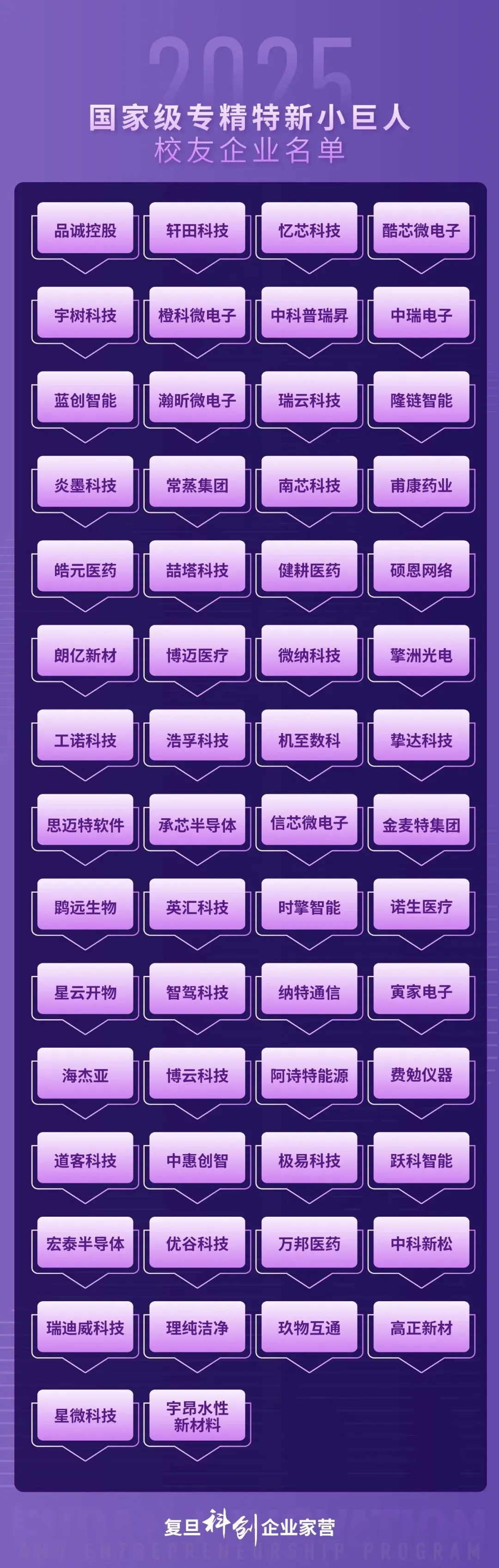 “专精特新”的认证,更是一场由国家背书的全面体检。2025年,新增29家国家级“专精特新小巨人”企业,累计58家,更有106家省市级专精特新企业,意味着过半校友企业以其关键核心技术,赢得了“技术-产品-商业化”的关键通关认证,并在创新体系、财务治理等方面步入了健康发展的轨道。