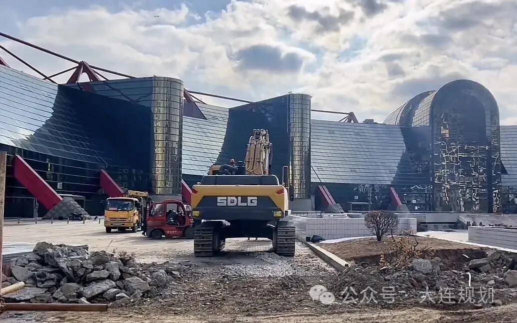 目前,剩余问题也在最终解决,协调已近尾声,大型机械已进场待命。会展一期门前绿植已全部吊装清运。