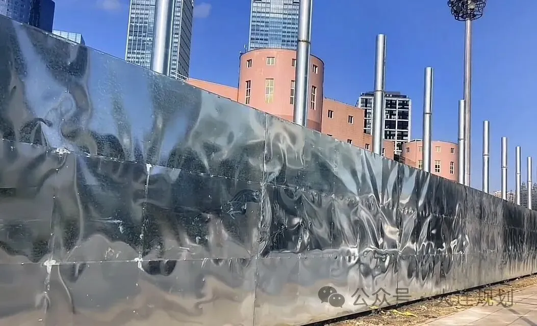 原设立的黄色临时围挡已拆除,取而代之的是已经完成过半的正式围挡。