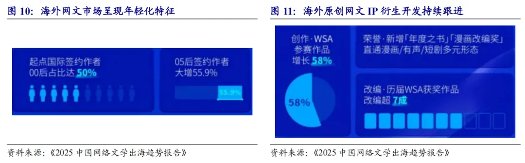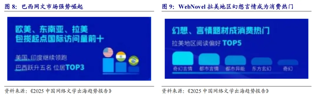 网文出海:截至2025年10月31日,WebNovel(起点国际)全作品总量同比增长20%,其中阅读量突破千万级的爆款已达538部。巴西市场用户访问量跃升五位,和美国、印度包揽全球访问量前三;同时美国市场用户规模同比增长91%,全球网文市场多级增长。