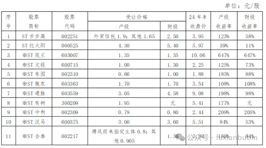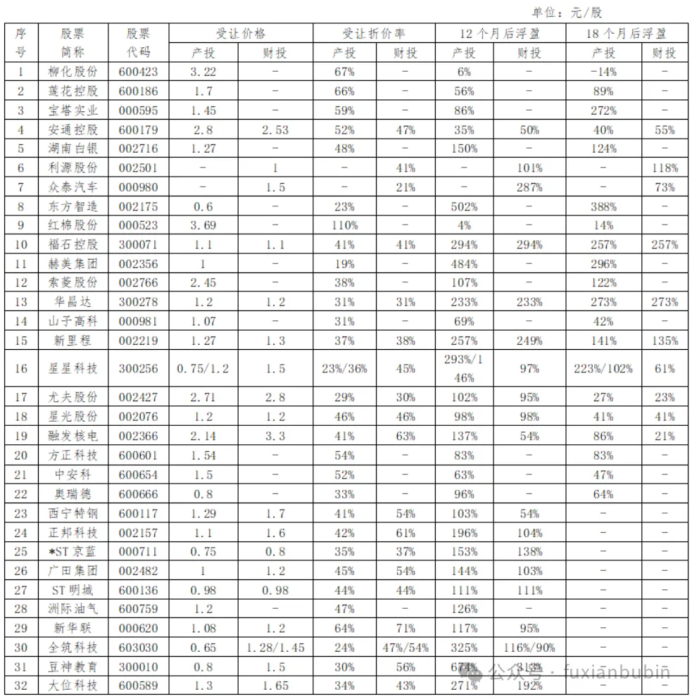 整获取了极大的财务收益。根据据国泰海通证券产业研究中心分析师徐琳、肖洁统计,投资人在上市公司重整通过资本公积转增股份、以股份套利的32家上市企业,获得账面财务收益远超一般投资产品: