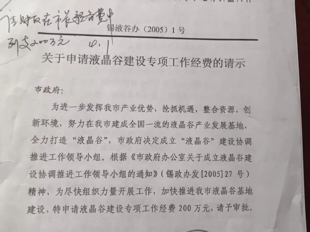 这是液晶办成立之初,市主要领导批示让财政拨款200万元。