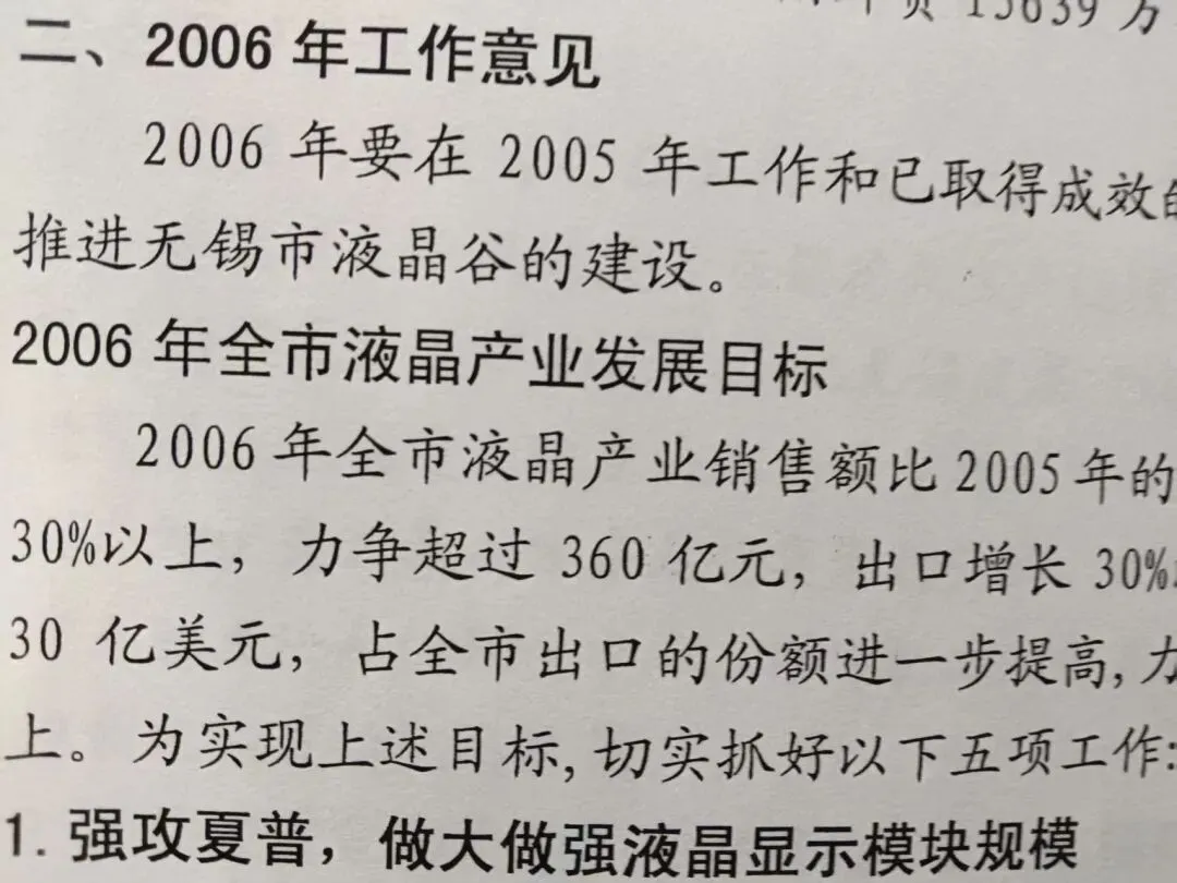 这是向市政府报告的2006年液晶产业发展增长30%的 目标,后面 有强化跟进的5条措施