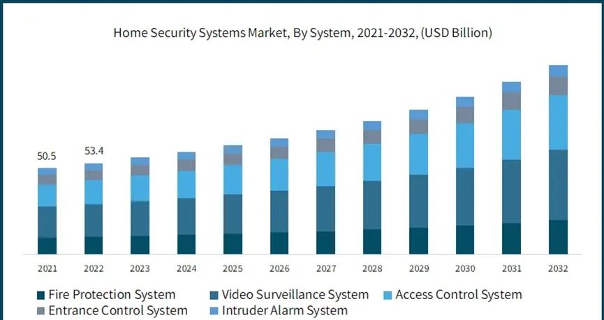 家庭安全系统市场规模持续增长,其中视频监控和门禁系统是主要组成部分。