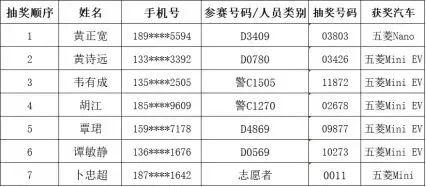 剩下的七台五菱新能源汽车通过抽奖,所有的参赛选手、志愿者和工作人员都有机会被抽中,赛后组委会在主席台进行了抽奖仪式,当场抽出获奖跑者。从获奖名单来看,中奖的还包括一名志愿者。