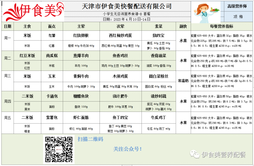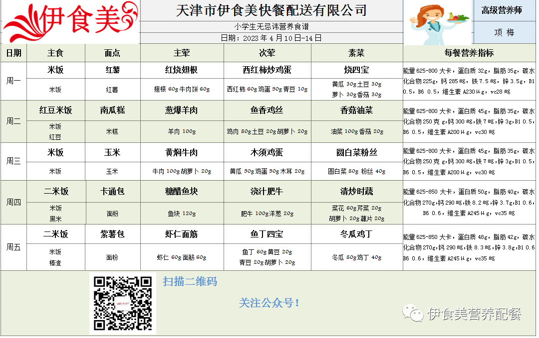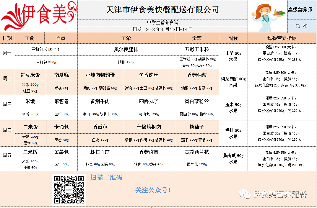 根据天气变化、市场原材料供应情况,菜品会有微调,以下菜谱展示仅供参考,具体用餐情况请以每天实际送餐为准,感谢理解!