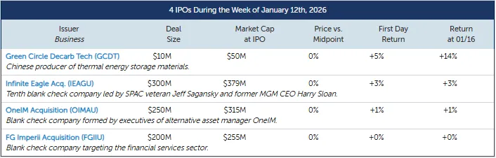 上周一家小型IPO和三家SPAC完成定价。共有八家IPO公司(包括五家规模较大的公司)和一家SPAC提交了上市申请。