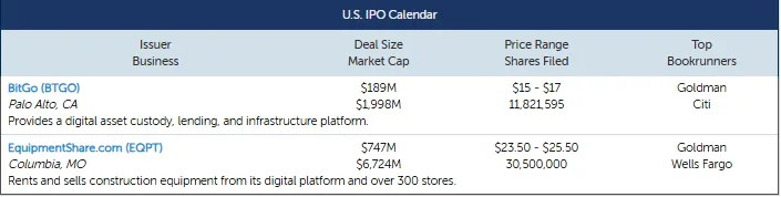 美国IPO市场展望:短暂的假期周将聚焦设备租赁和加密货币IPO