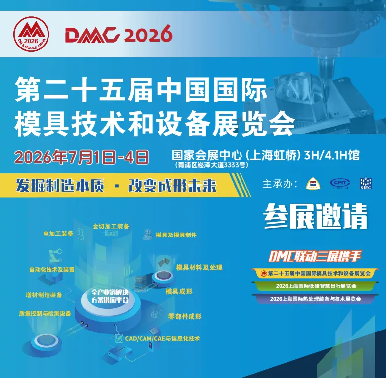 2026年7月1日至4日,第二十五届中国国际模具技术和设备展览会(DMC2026,即2026上海国际模具展)将移师国家会展中心(上海)3H和4.1H馆盛大启幕。