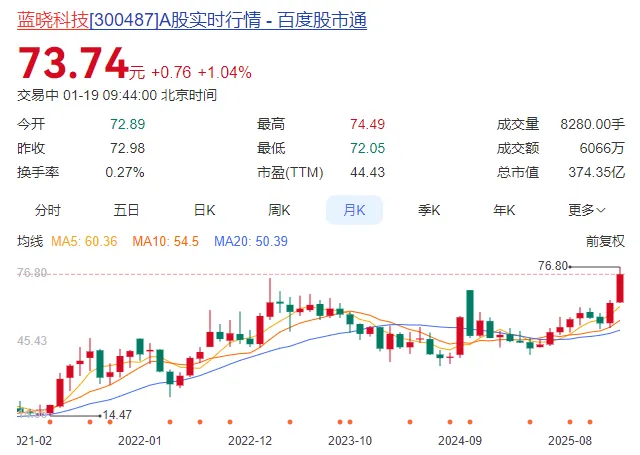 1月16日刚刚创造了新的历史,76.8元,打开了新的上涨空间。