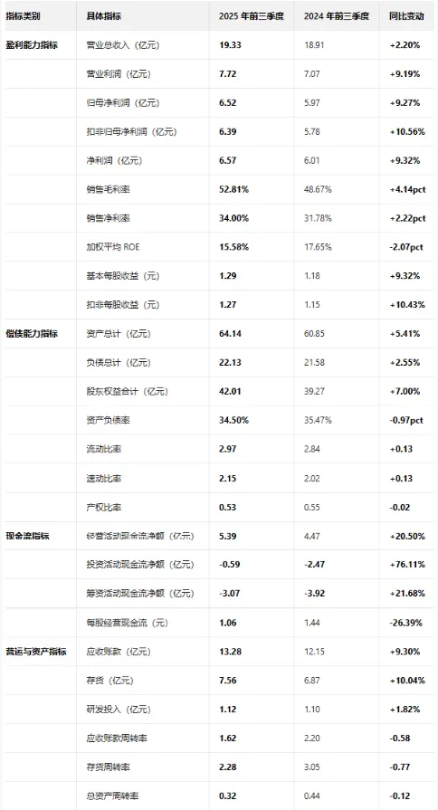 总结一下:盈利能力创历史新高:毛利率达 52.81%,同比提升 4.14 个百分点,主要得益于生命科学、金属等高毛利品种占比提升及原料价格回落;现金流状况大幅改善、财务结构持续优化、单季度业绩加速增长:第三季度实现营业收入 6.86 亿元,同比增长 14.86%,环比增长 2.29%,呈现逐季改善态势。