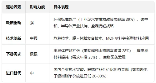 技术迭代风险:新型材料(如 MOF、碳基材料)可能对传统树脂市场形成冲击