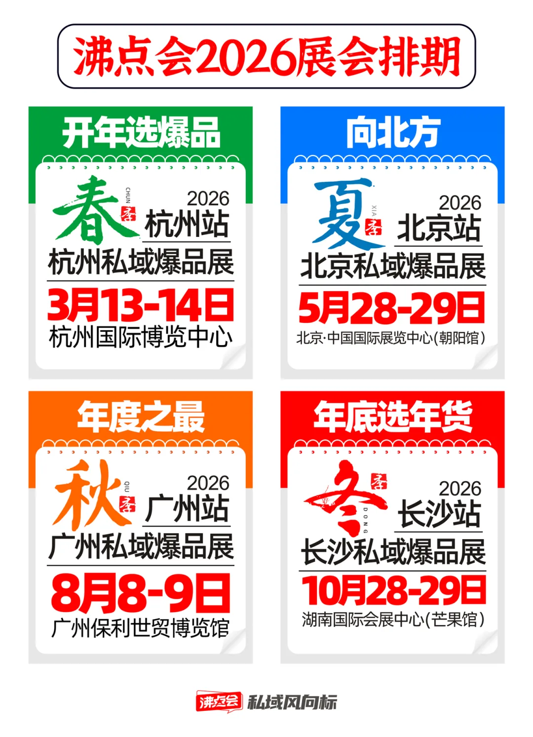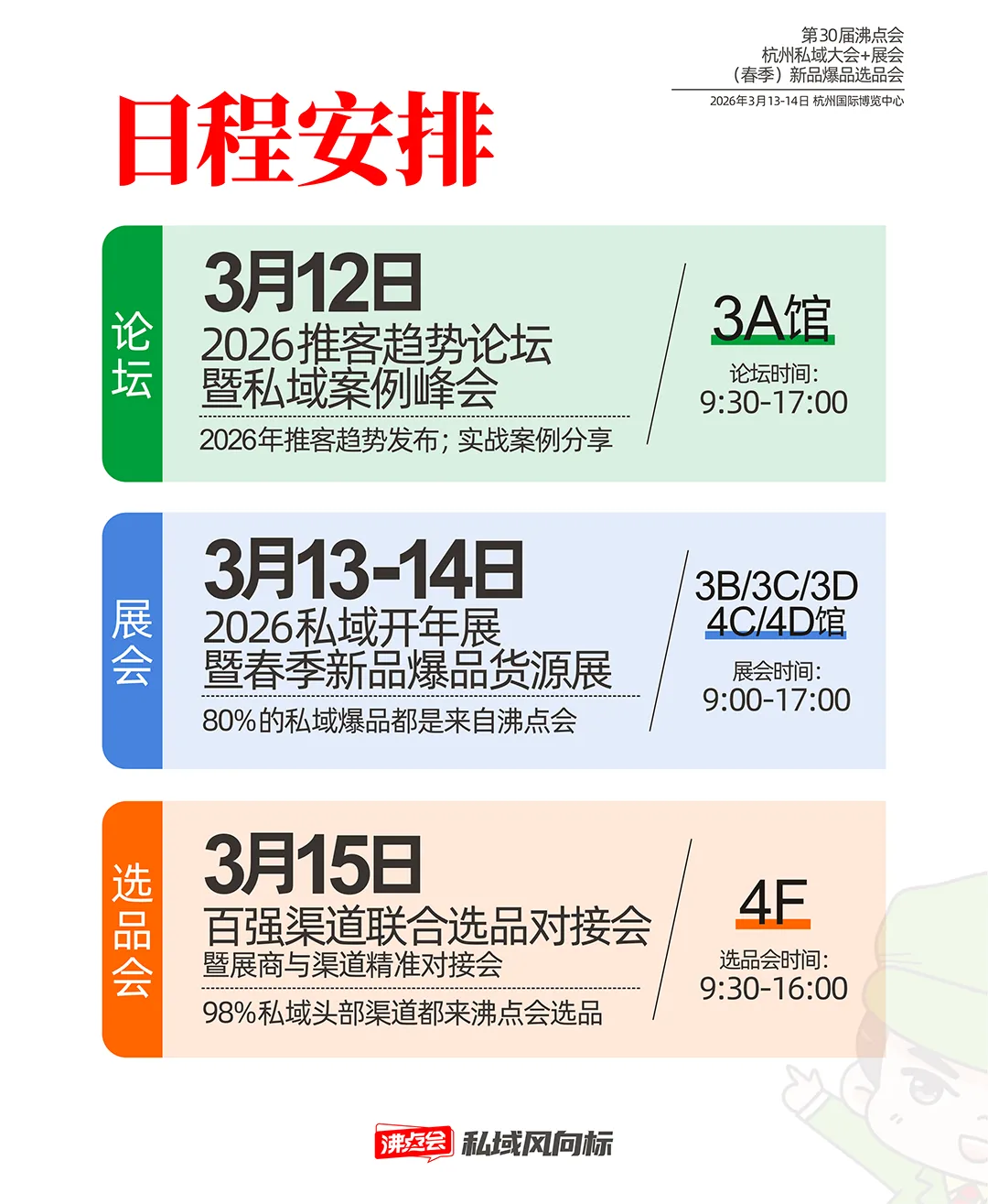 ⏰3月13-14日:2026私域开年展暨春季新品爆品货源展;1000+参展商,10000+新品爆品同台展示,98%私域头部渠道现场选品。