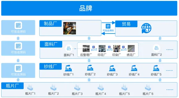 在产业实践中,已经有类似于可信数据空间的数字化平台正在建设中。由国家工信部消费品司与江苏省苏州市市场监督管理局指导、中国化学纤维工业协会、国家先进功能纤维创新中心联合运营的绿色纤维制品可信平台搭建了一个从瓶片回收到下游的服装织造,从纤维到终端产品的透明可信的循环再生可追溯平台。该平台的目标是实现制造交易可信、制造工艺可信、制造过程可信、制造质量可信、制造仓储可信和物流运输可信。
