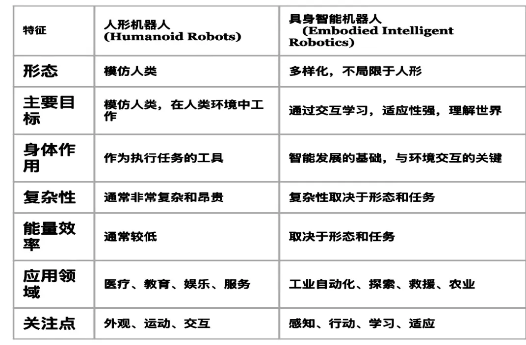如今要在任何一个行业的制造企业进行数智化转型升级,实现自动化、智能化、自适应和自主化生产,如果没有人形机器人及具身智能机器人那是不可能成功实现的。人形机器人和具身智能机器人之间主要区别在于有没有和AI融合,见图十一。