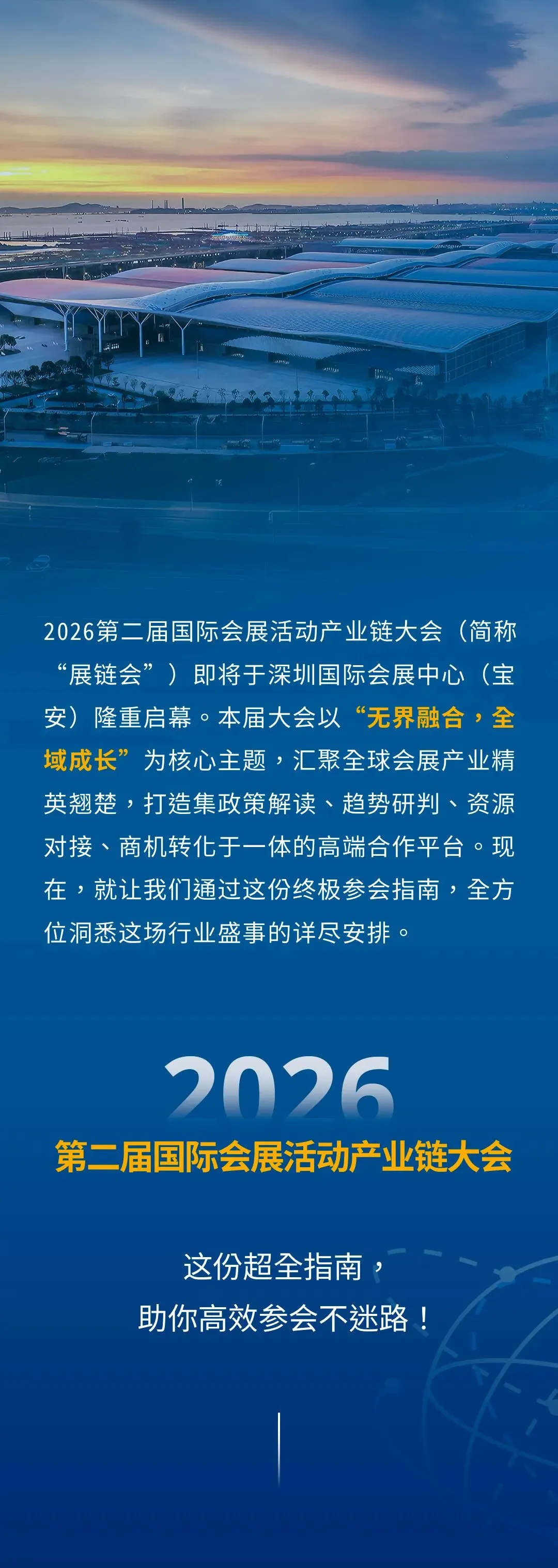 以“无界融合,全域成长”为初心,本届展链会汇聚行业精英、整合优质资源,搭建起会展产业链高效对接的权威平台。从百亿招采商机到前沿技术探索,从精准供需匹配到深度人脉链接,3天盛会将为行业注入新动能、开拓新空间。