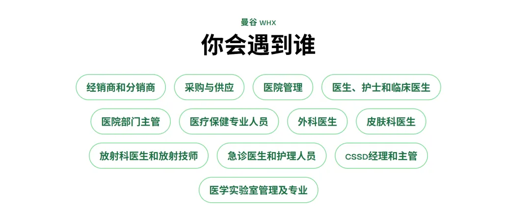 WHX Bangkok 和 WHX Labs Bangkok 是东南亚领先的医疗保健和医学实验室展览会及会议,汇聚各行业精英,为来自东南亚各地的数千名商业人士、医学专家和采购商提供学习、交流和拓展人脉的平台。