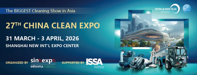 第 27 届中国清洁博览会将于 2026 年 3 月 31 日至 4 月 3 日在上海国际展览中心(SNIEC)举行。中国清洁博览会诚邀全球清洁和设施管理领域的专业人士齐聚上海,共同探讨行业洞见与创新,携手合作,共创未来。