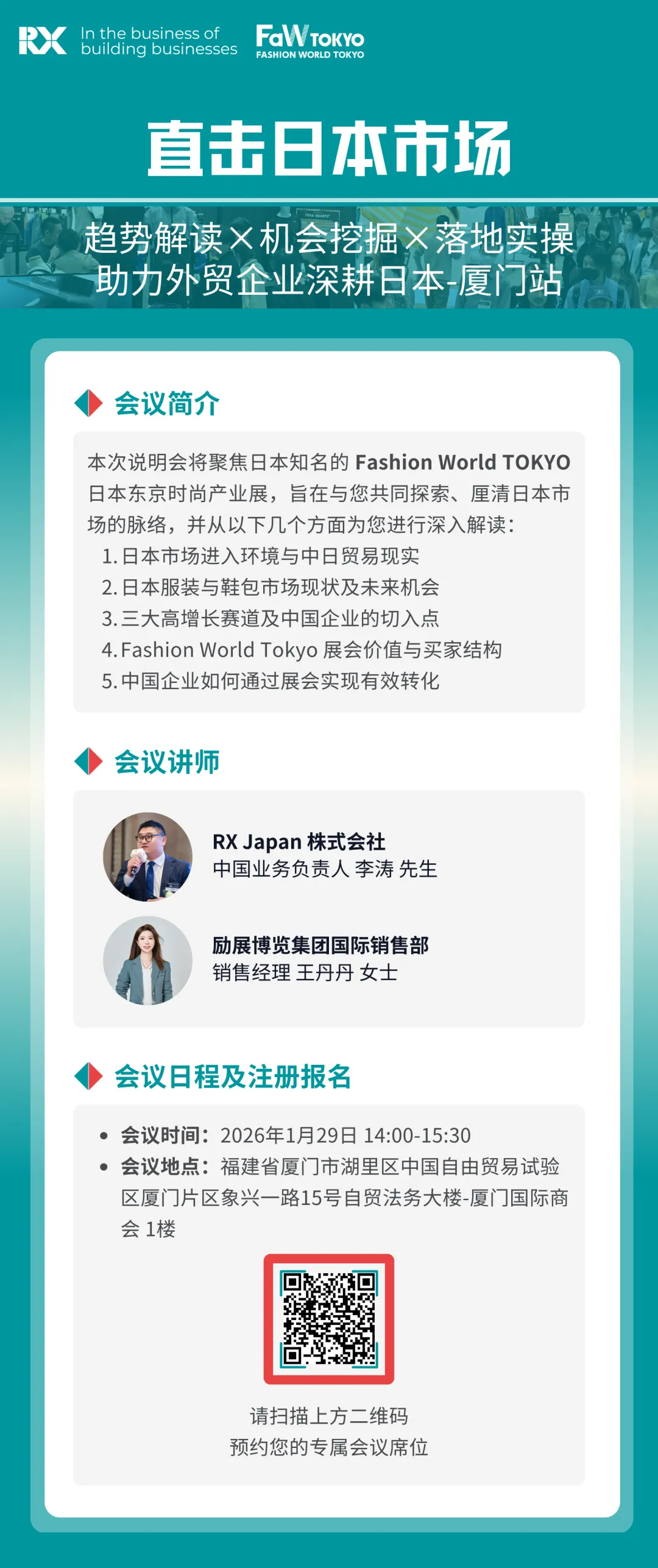 直击日本市场!Fashion World TOKYO日本东京时尚产业展(厦门站)