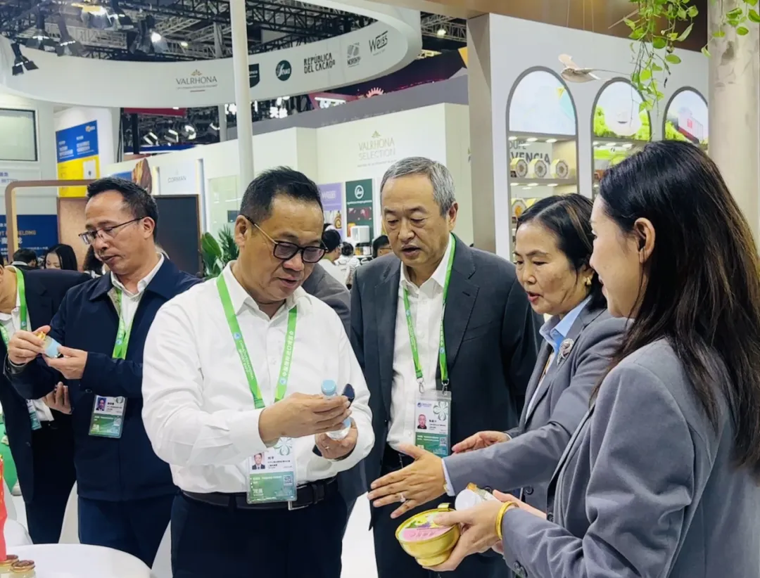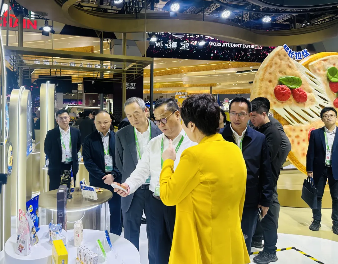 奉贤区委书记刘平一行走访参观妙可蓝多及燕太太展台点位,参观企业特色产品与创新成果展示,听取了关于企业发展历程与经营现状的介绍,并就企业未来的战略方向、市场布局规划等进行交流,共同展望合作发展新机遇。