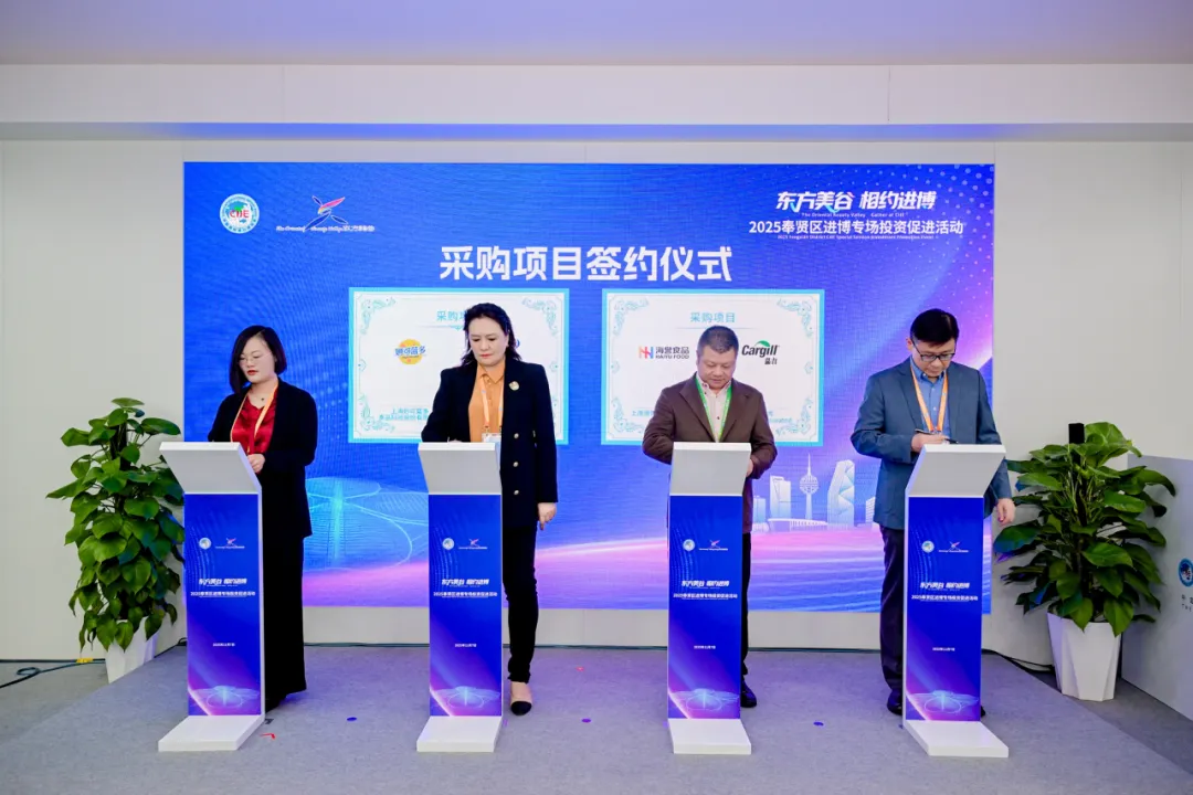 第八届中国国际进口博览会期间,金汇镇积极承接并放大进博会溢出效应,最终金汇镇四家企业妙可蓝多、燕太太、海誉、辉展果蔬市场与境外供应商达成采购协议,采购金额4.85亿元,占全区采购金额70%。
