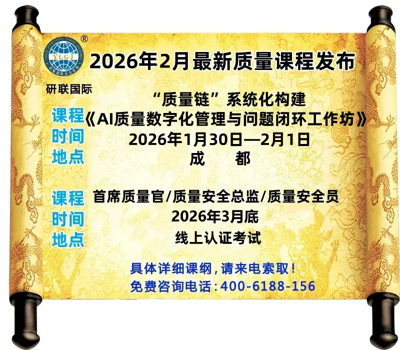 我公司于2026年1月30日—2月1日在成都举办:“质量链”系统化构建《AI质量数字化管理与问题闭环工作坊》培训课程,火热招生中!