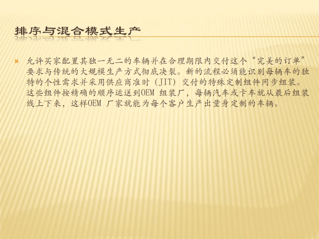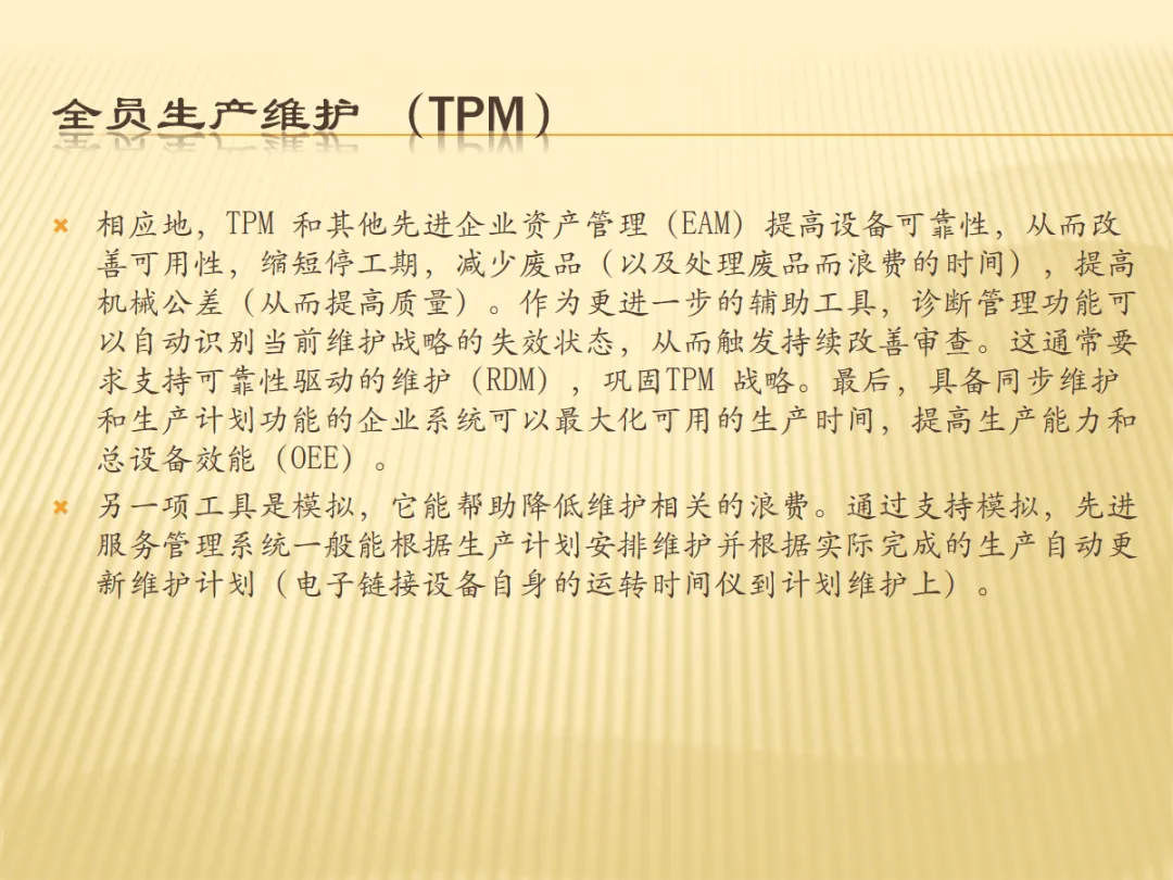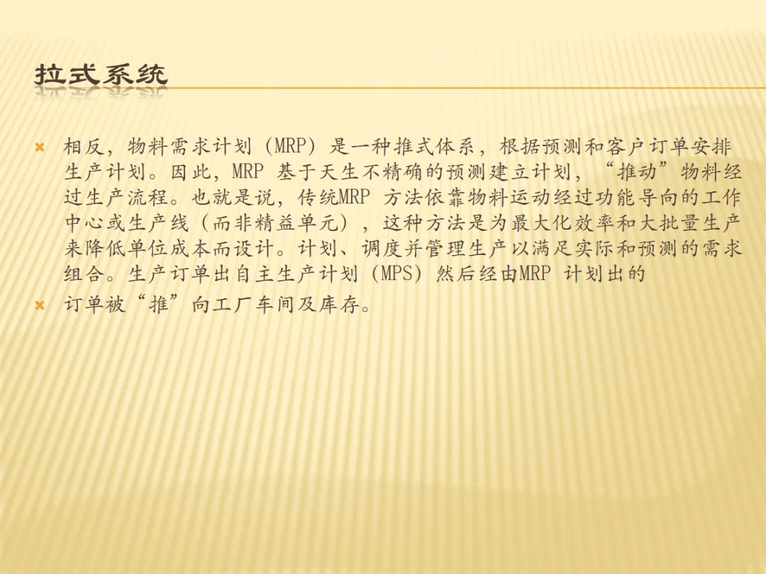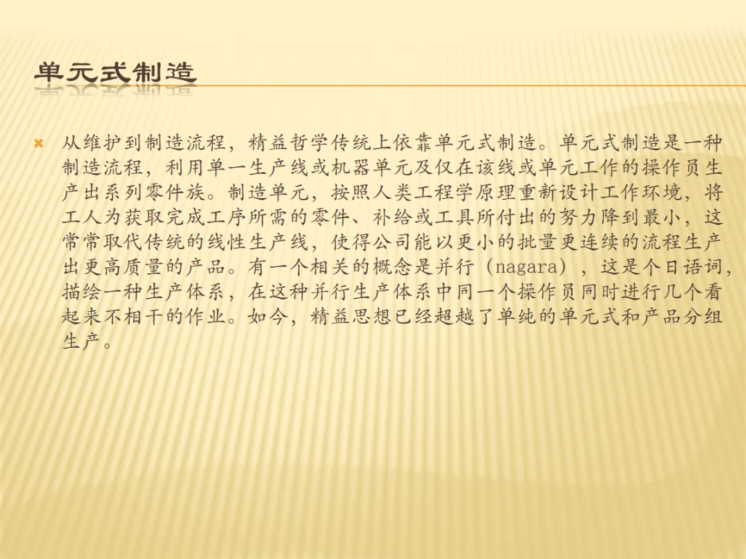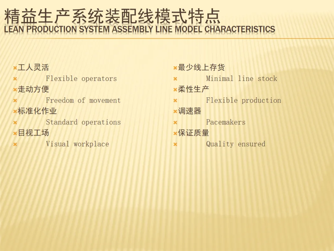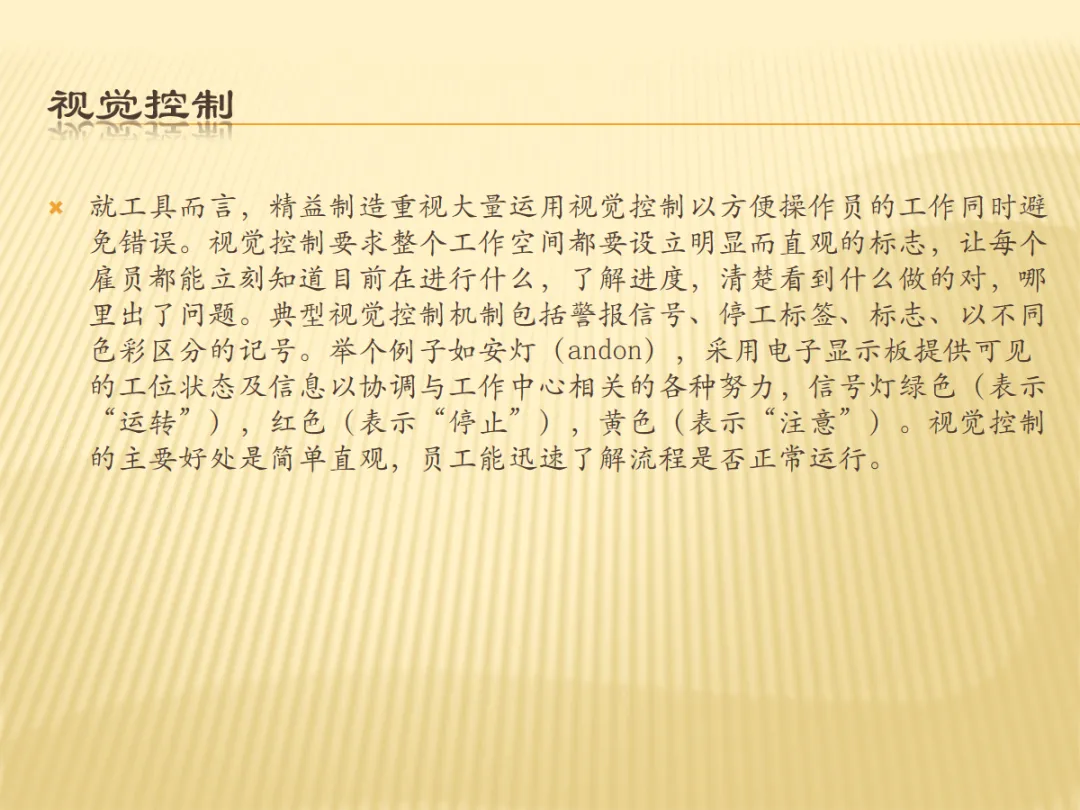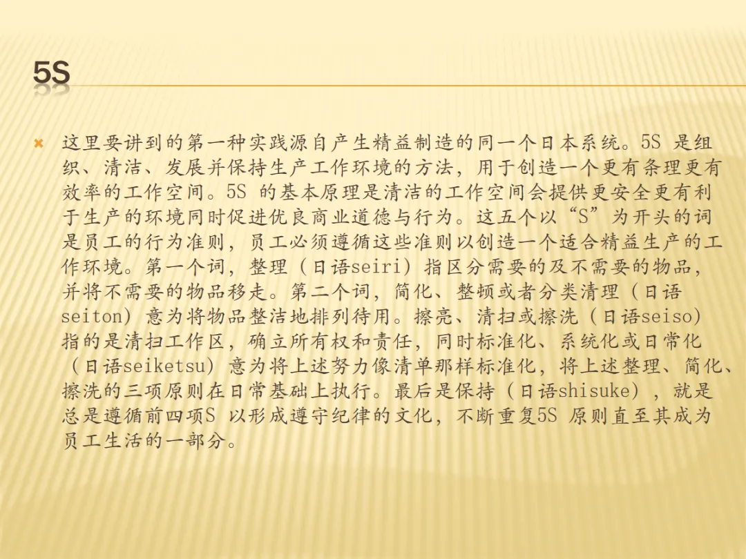 本文系统性地阐述了精益生产的核心工具、系统设计与实施策略,构建了一个从理论到实践的完整框架。内容围绕精益生产系统(Lean Production System) 展开,强调通过及时生产(JIT)与自働化(Jidoka)两大支柱,结合均衡生产(Heijunka),实现质量、成本、交付与安全的综合优化。文中详细介绍了12种精益工具,包括5S、目视控制、标准化作业、防差错、全员生产维护、单元式制造、单数换装时间、拉式系统、排序与混合模式生产、作业成本法以及均衡化与混流制造等,这些工具共同作用于消除生产过程中的浪费、提升流程稳定性与响应速度。PPT还深入探讨了生产线布局设计(如U型线、直型线等),并强调通过节拍时间(Takt Time)同步生产与客户需求,实现单件流与拉动系统,最终达到灵活、高效、可持续的生产运作。整体而言,该资料不仅提供了精益生产的理论核心,更侧重于系统化实施的方法与工具,为企业推进精益转型提供了具备操作性的指导蓝图。