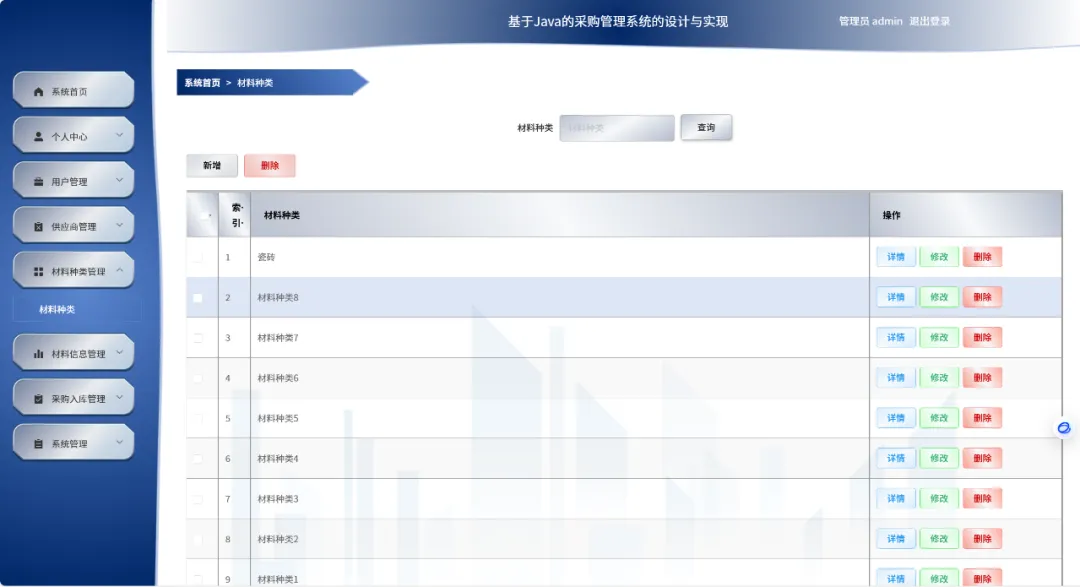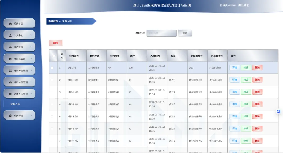 项目目标: 本项目旨在设计并实现一套采购管理系统,旨在优化商店在材料信息管理、公告发布等日常事务中的流程。系统通过自动化处理繁琐重复的工作,显著提升工作效率,同时有效减轻管理人员的日常工作负担。