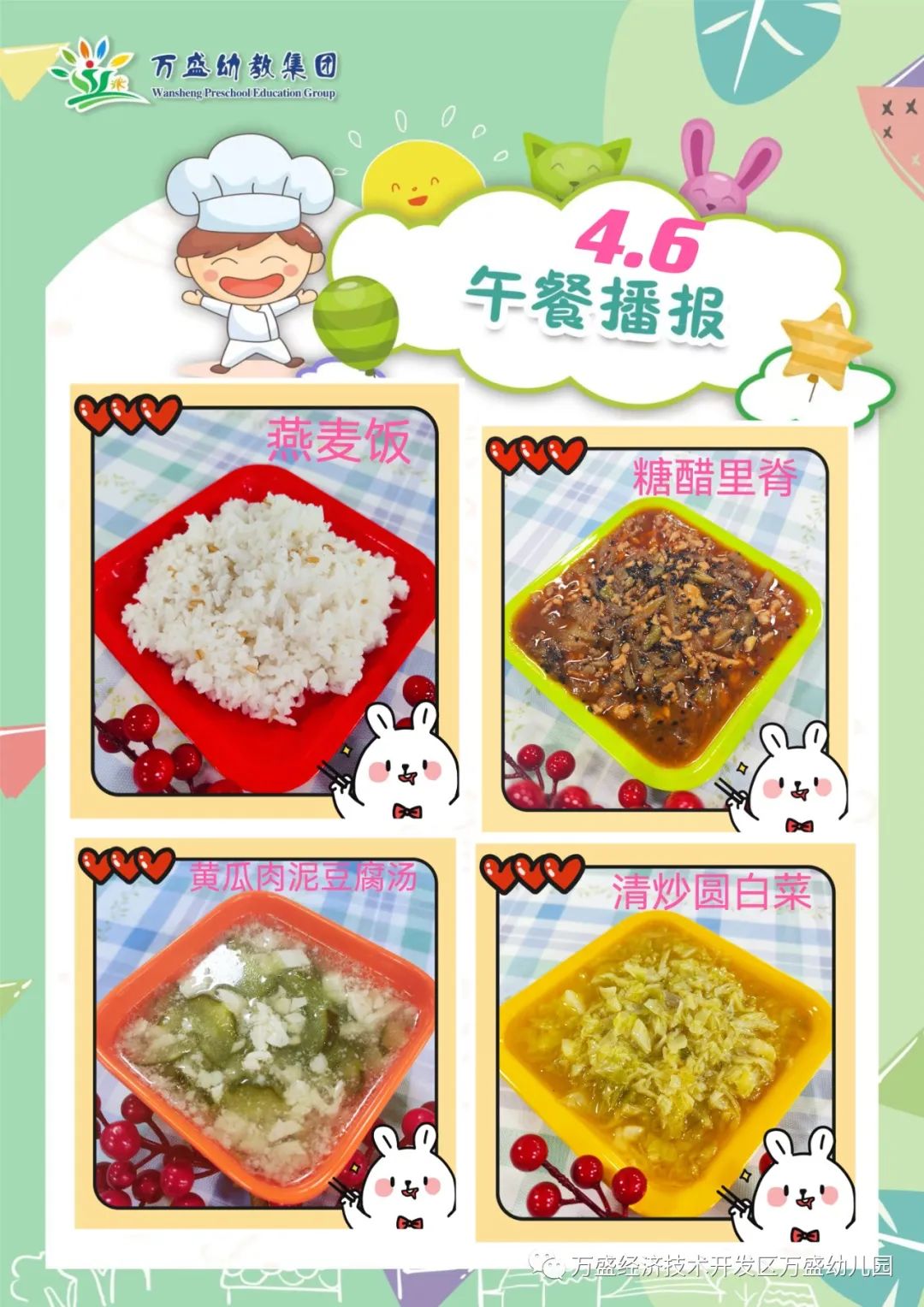 午餐:燕麦饭、滑蛋牛肉、素炒瓢儿白、番茄肉泥汤