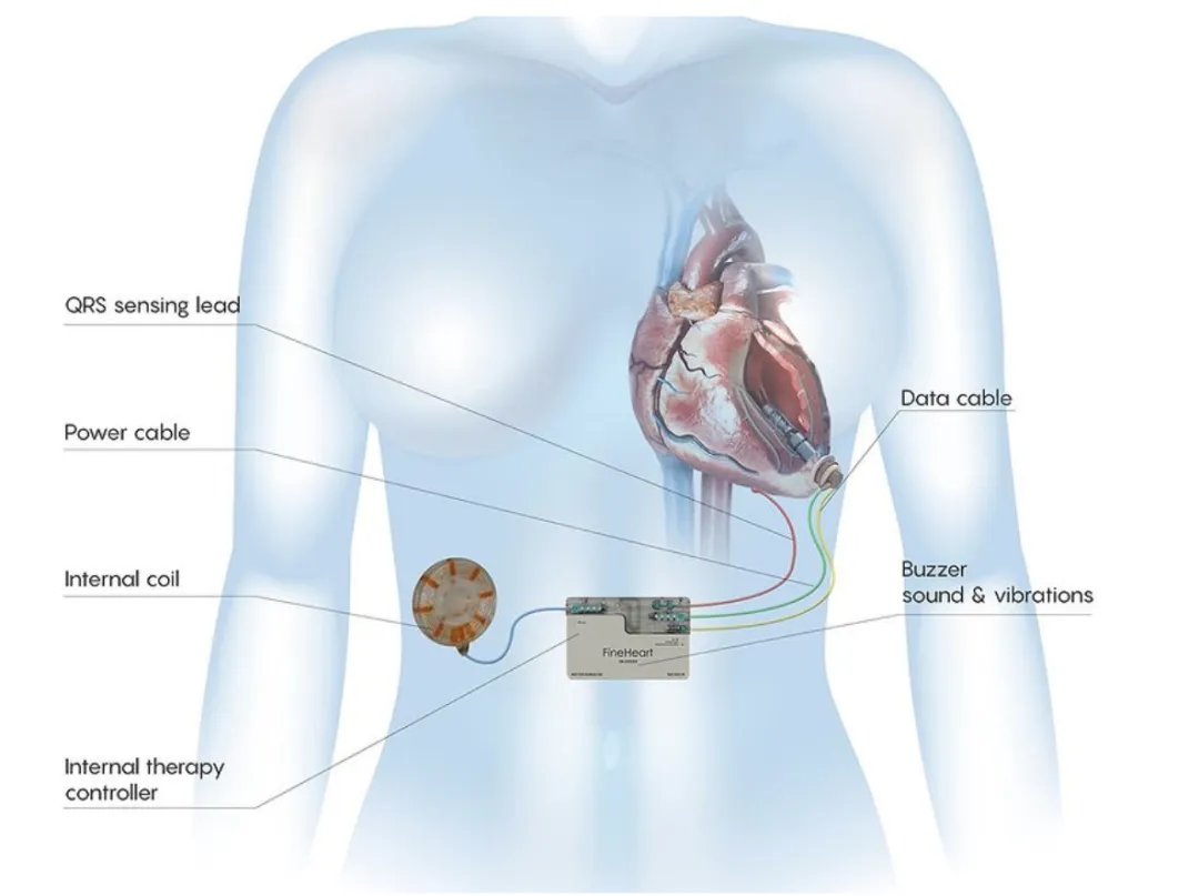 在技术路线选择上,FineHeart 将 FlowMaker 定位为一种更接近生理状态的辅助方案。该装置完全植入心室内,不需要主动脉旁路,且通过经皮能量传输(TET)系统进行无线充电,避免了传统 LVAD 长期依赖体外供能接口所带来的感染风险。公司方面表示,这种设计有望在降低侵入性的同时,显著改善患者的长期生活质量。