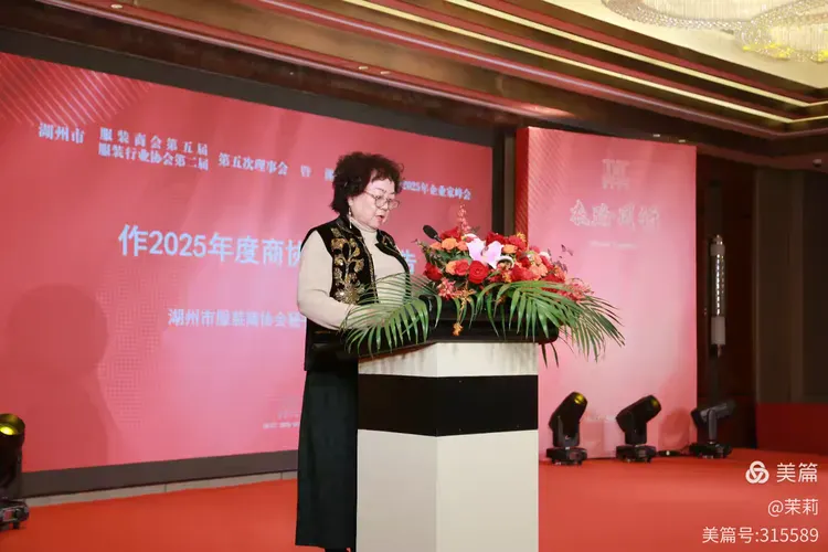 湖州市服装商协会秘书长叶丽芳女士作2025年度商协会工作总结报告,系统回顾了一年来在服务企业、推动创新、促进行业交流等方面取得的成效。