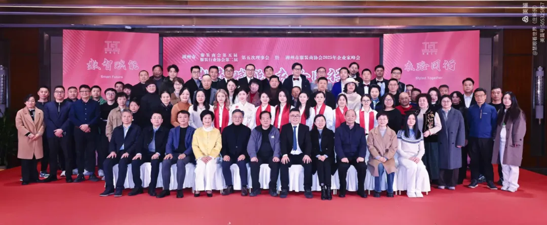 2026年1月17日,湖州市服装商会第五届第五次理事会、湖州市服装行业协会第二届五次理事会暨湖州市服装商协会2025年企业家峰会在湖州宾馆隆重召开。本次会议以“数智赋能,衣路同行”为主题,在年度时尚色彩“摩卡慕斯”的温暖氛围中,汇聚了行业领导、企业家代表及各界嘉宾,共同总结过去、展望未来,凝聚行业发展新动能。