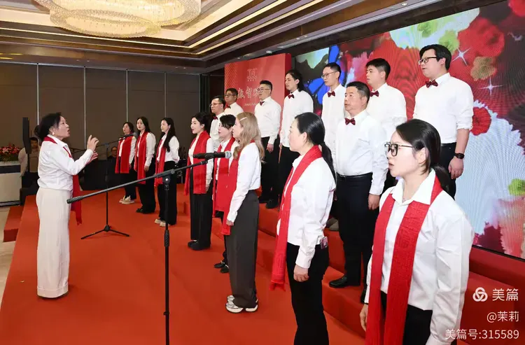 当晚,年会举办了盛大的交流晚宴。湖州服装商协会枫叶合唱团献上了精彩演出,该团曾于2025年7月赴港参加香港回归二十八周年庆典文旅活动。在艺术团团长李利民老师的指挥下,全场齐声高唱《同一首歌》,将活动推向高潮。