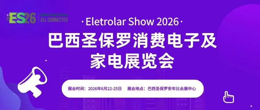 2026 年 6 月 22-25 日,巴西圣保罗国际消费类电子及家用电器产品展览会(Eletrolar Show 2026)将在阿年比展览中心(Distrito Anhembi)盛大启幕。作为拉丁美洲地区规模最大的消费电子及家电类专业展会,这场延续 20 年辉煌(疫情期间中断 2 年,累计举办 18 届)的行业盛会,将再次汇聚全球目光,为企业搭建起通往南美市场的黄金桥梁!