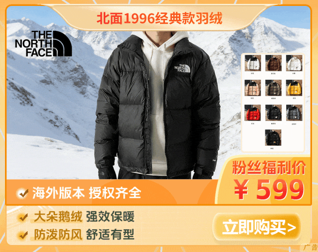 断码清仓,北面羽绒服3折抢!轻便舒适又保暖,穿上它就是移动的小太阳!点击下图购买