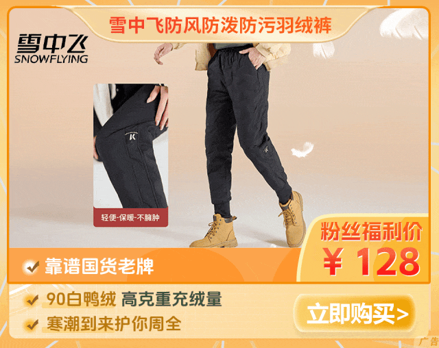 一条裤子过冬?25年老牌雪中飞!三防90白鸭绒,防风抗寒,保暖又有型!点击下图购买