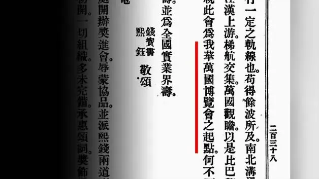 据《奏办湖北武汉劝业奖进会报告书》记载,北洋大臣端方曾特派代表钱宝书参会,钱宝书盛赞其会为“我华万国博览会之起点”。