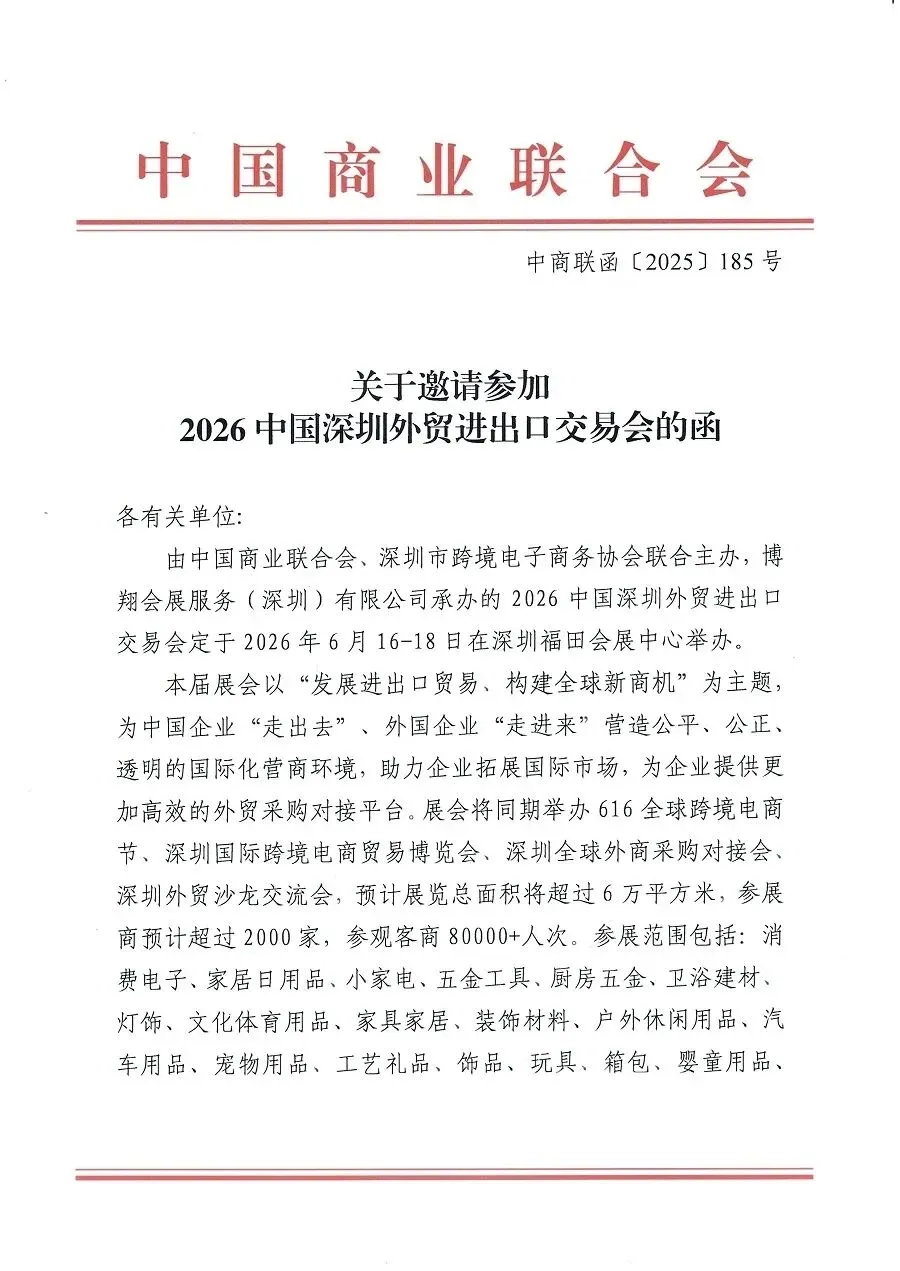 关于邀请参加2026中国深圳外贸进出口交易会的函