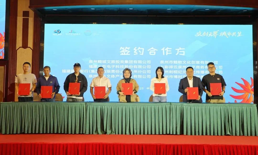 推介会现场捷报频传,当天共签署订单金额超500万元,实现“开门红”。福建火炬电子科技股份有限公司、福建新华发行(集团)有限责任公司泉州分公司、泉州侨乡文体产业开发有限公司、泉州市鲤物文化创意有限公司、七彩祥云泉州电子商务有限公司、泉州刺桐纪元文化传播有限公司、泉州市博时文创有限责任公司等完成首批订货签约。