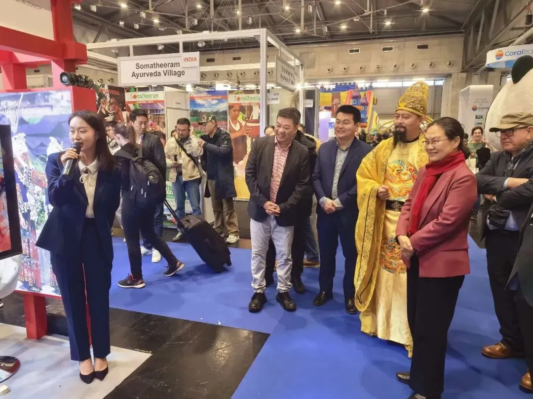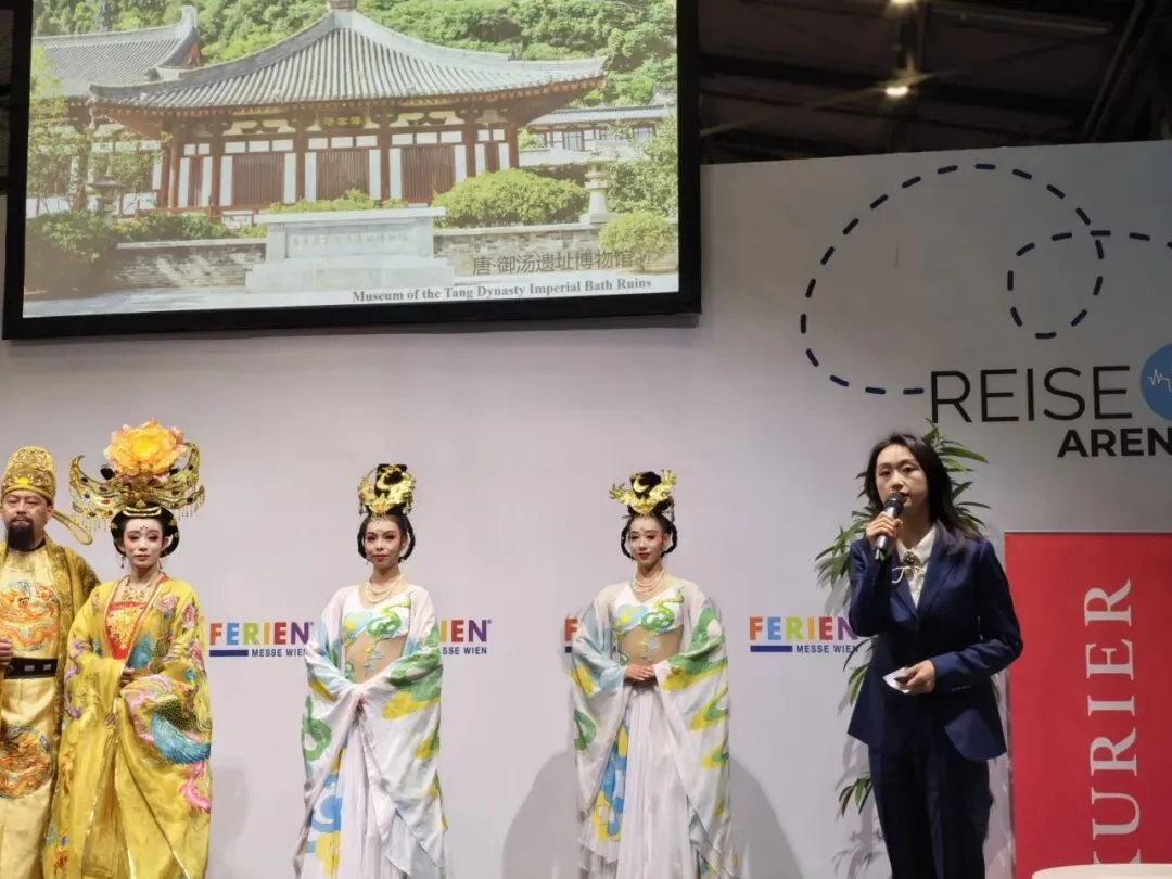 展会现场,华清宫景区通过唐宫乐舞表演、沉浸式展陈设计等多维形式,立体展示盛唐文化魅力。景区推介官更是以流利英文进行生动详细的介绍,使奥地利市民切身领略中华文化的独特魅力。值得一提的是,中国驻奥地利大使亓玫也亲临展会现场。