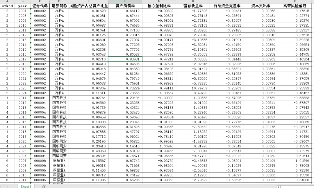 本数据参考郭道燕等(2016)的做法从资产结构、偿债能力、盈利结构、利润分配和现金流量五个方面选取6项指标,采用主成分分析方法对上市公司高管风险偏好进行测算,数据时间范围覆盖 2007-2024年,包含原始数据、计算代码、最终结果及参考文献