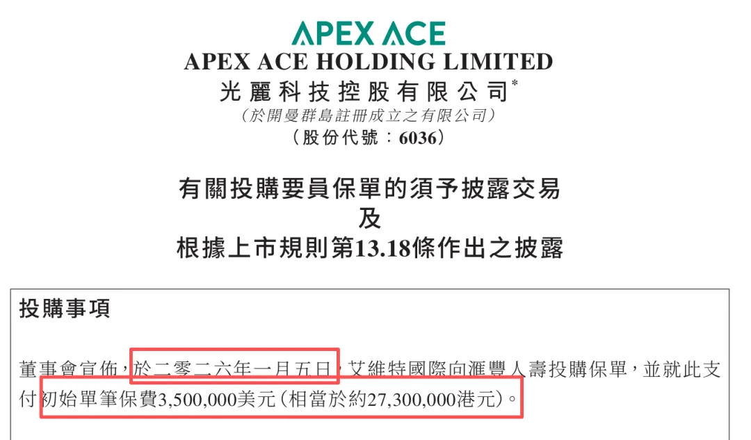 最近光丽科技和宏安地产接连发公告,给自家CEO买了香港保单,一单350万美元,一单485万美元。