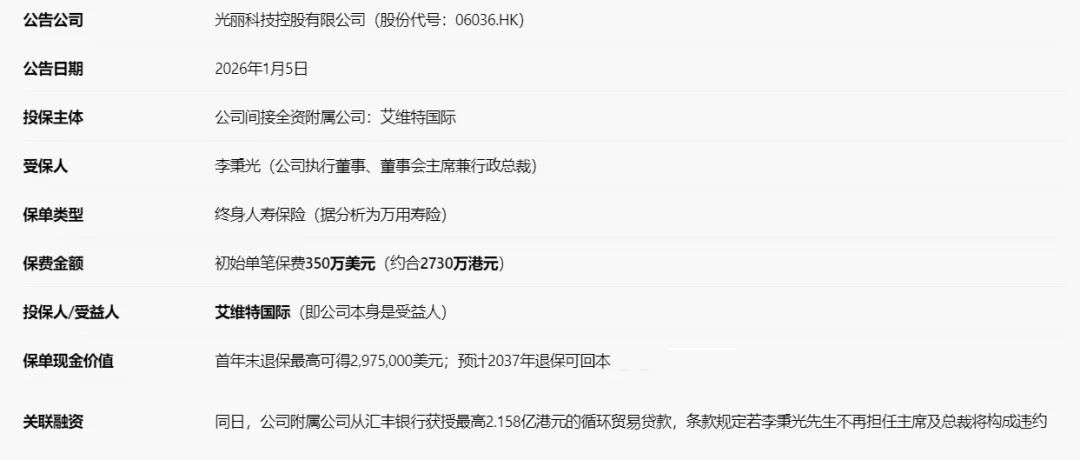 光丽科技这次投保,直接关联着一笔2.158亿港元的银行贷款。
