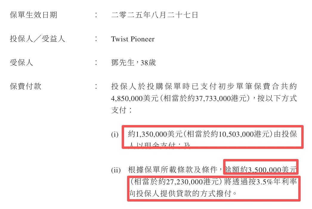 比如这次485万美元的保费,公司可能只出了100万美元左右,剩下的300多万都是贷款。
