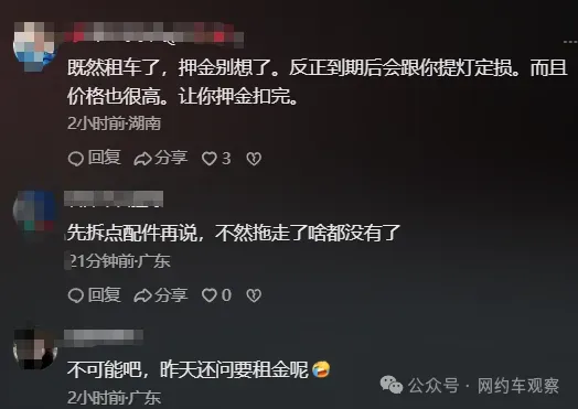 这个时候,平台也无法独善其身。许多平台在早期为扩大运力池,与租赁公司建立深度捆绑关系,包括联合营销、司机招募、金融方案合作等。一旦关联租赁公司暴雷,司机群体容易将对租赁方的信任危机转嫁至平台,认为平台未尽到监管与保障责任。