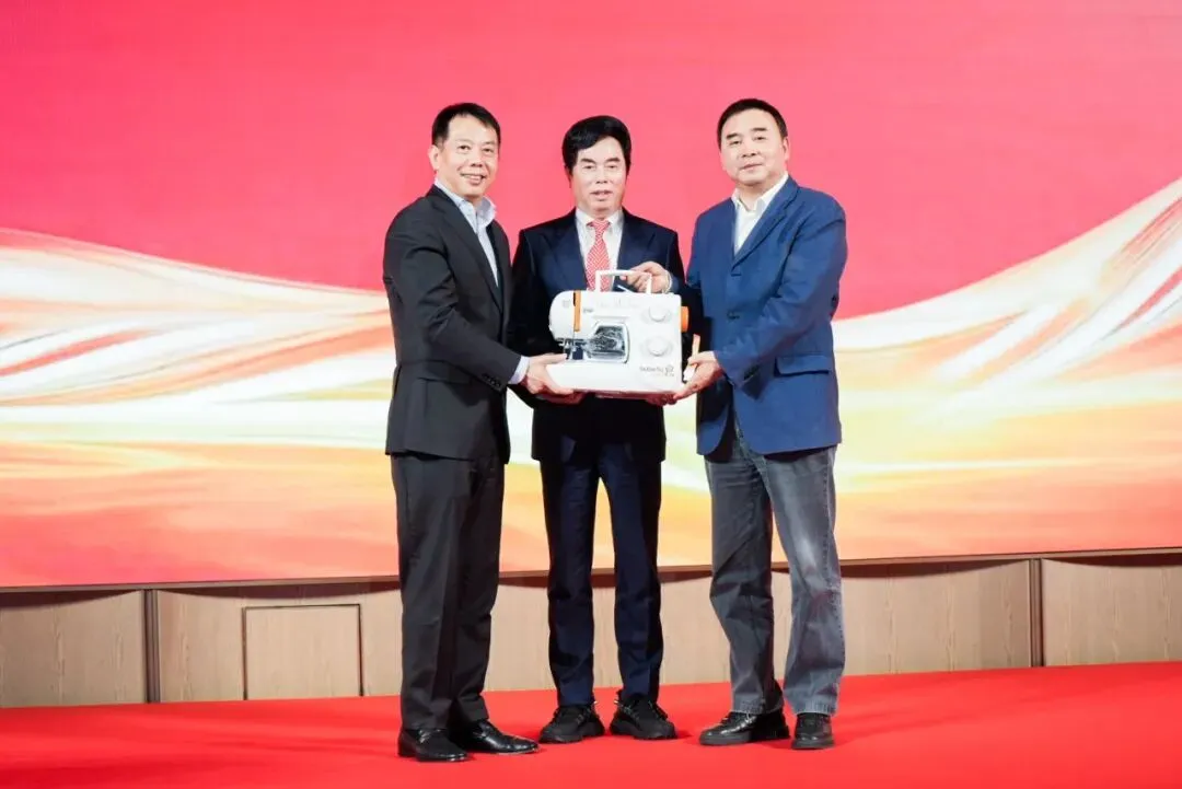 这台缝纫机具有特殊意义,它与2014年作为国礼赠送给斯里兰卡的600台缝纫机系出同款,是“中国制造”和“中国友谊”的象征,承载着中国纺织服装工业的时代记忆与技术结晶。 这一赠予,不仅是对行业前辈的致敬,也象征着上工申贝旗下“蝴蝶”等民族品牌的责任传承,以及公司与行业领导机构携手共进、缝制新时代的美好寓意。高德康理事长对此表示感谢,并肯定了上工申贝为行业发展所作出的贡献。