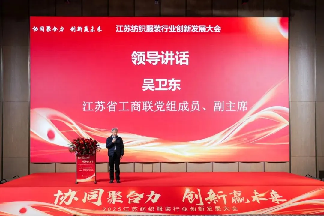 江苏省工商联党组成员、副主席吴卫东在总结讲话中充分肯定本次大会的成果,并鼓励广大企业把握政策机遇,加强技术协同与模式创新,共同构筑江苏纺织服装行业竞争新优势。